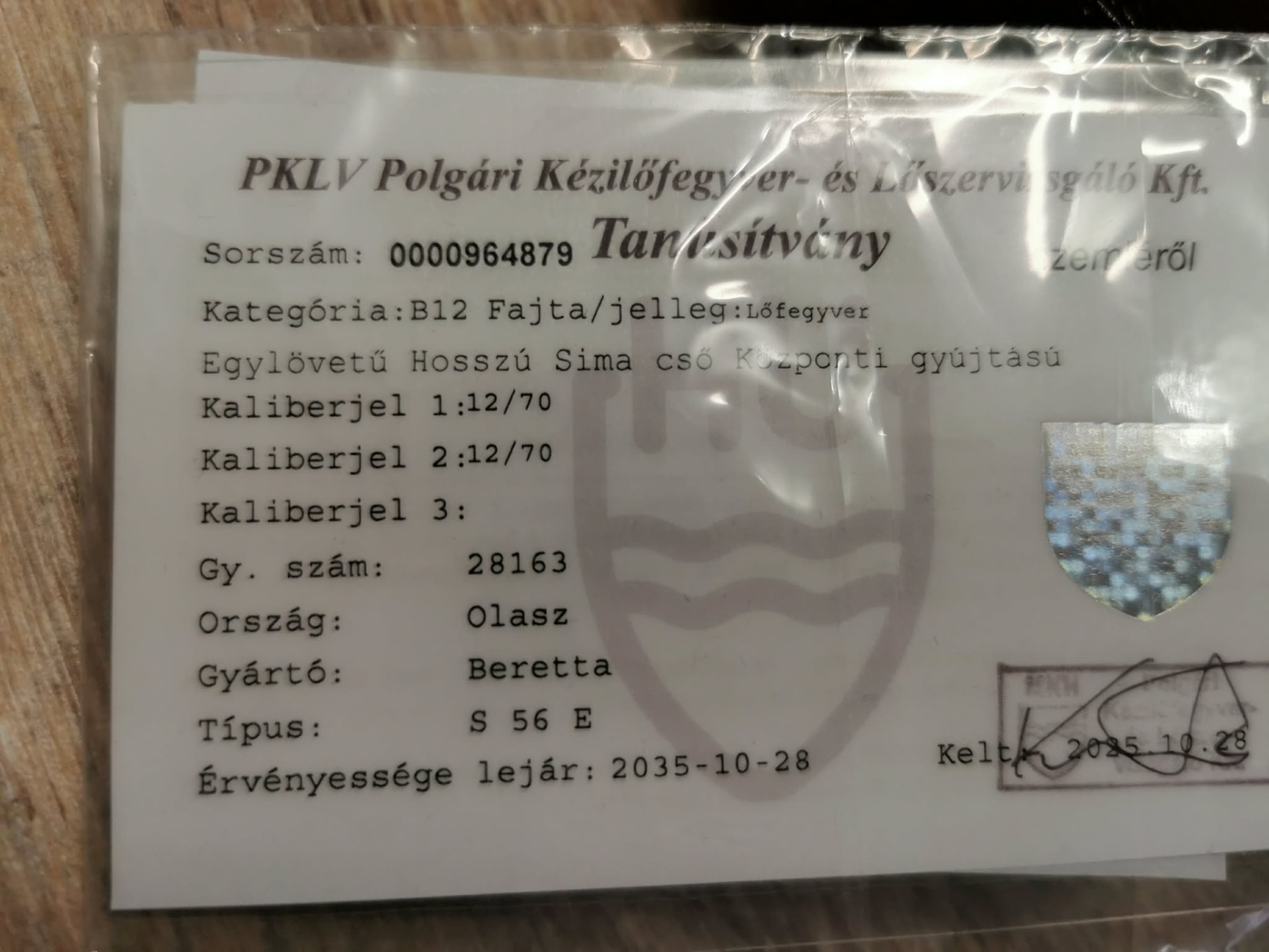 Beretta S 56 E 71 cm csőhosszal, fix 3/4 - FULL szűkítéssel, hagyományos, két elsütőbillentyűvel, Olaszországból behozva, friss vizsgával