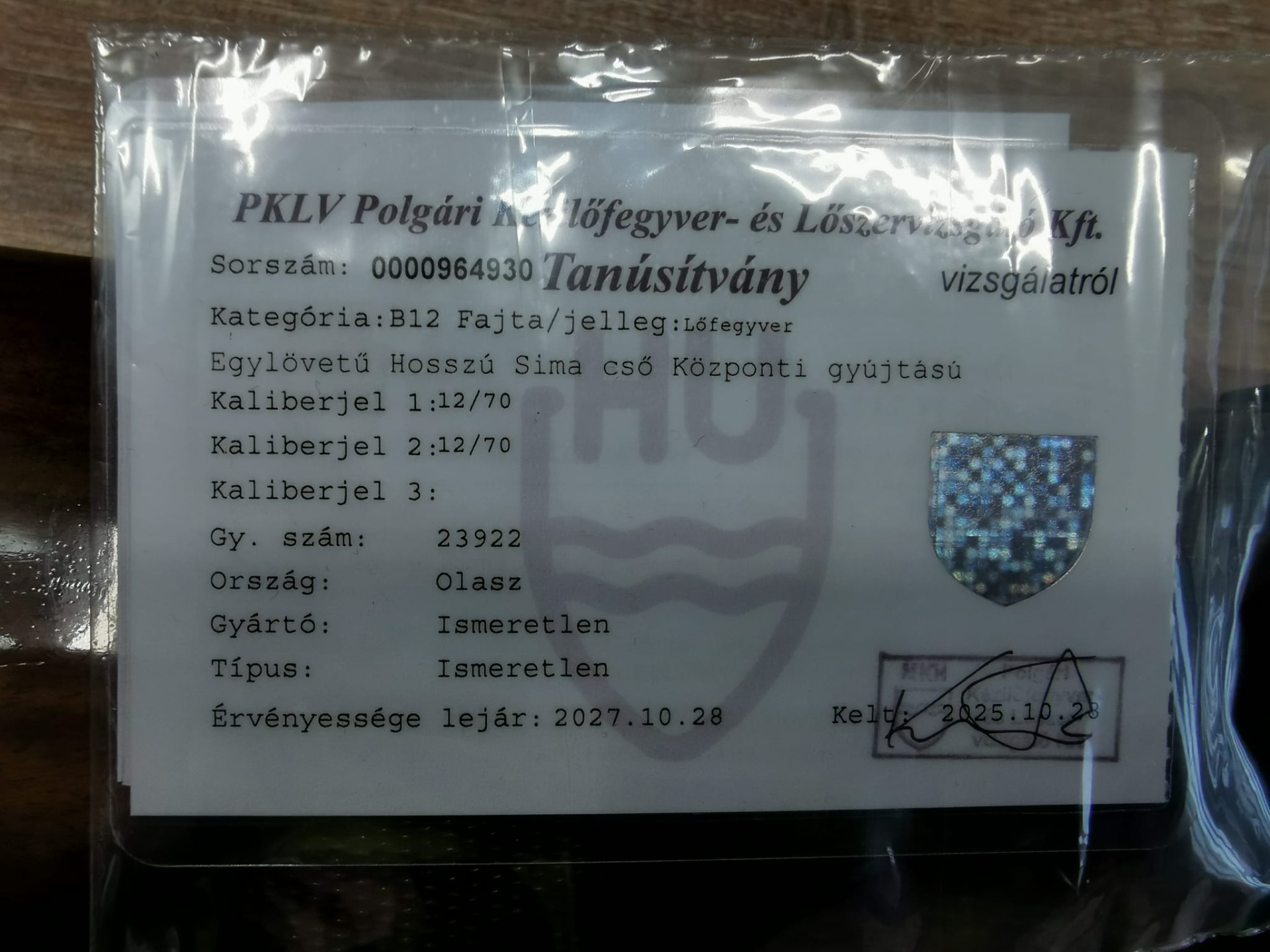 Lucchini Doppietta 73 cm csőhosszal, hagyományos, két elsütőbillentyűvel, Olaszországból behozva, friss vizsgával