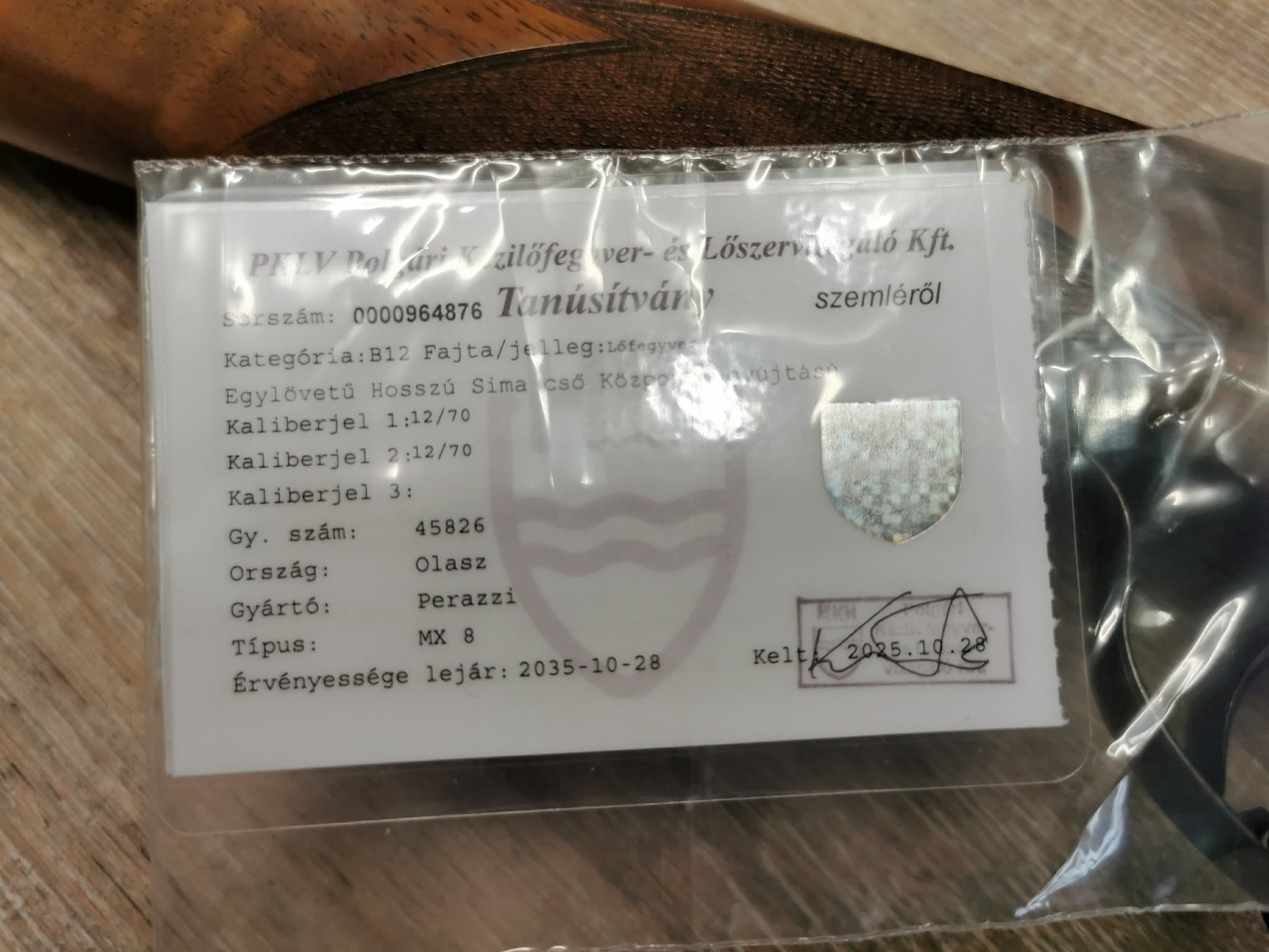 Perazzi MX8 75 cm csőhosszal, fix 3/4 - FULL szűkítéssel, egy elsütőbillentyűvel, sorrendváltóval, Olaszországból behozva, friss vizsgával, prémium fával, kitűnő esztétikai és műszaki állapotban